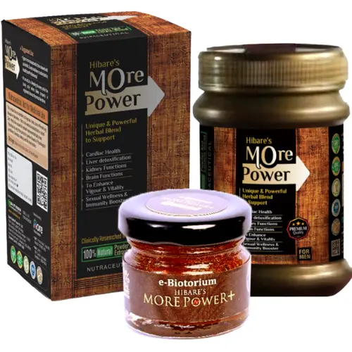 At More Health Care, we are driven by the profound realization that true vitality is achieved when nature and science work in perfect synergy. We craft premium Ayurvedic Proprietary Medicines, such as HIBARE’S MORE POWER & MORE POWER PREMIUM+, to help individuals unlock their untapped potential and pursue a life of strength, stamina, and well-being.